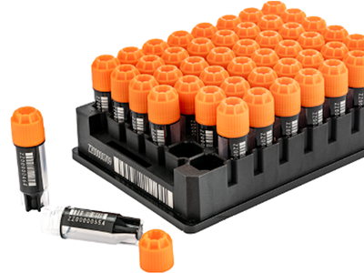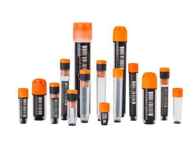 The tubes offer a variety of code options: 2D code, 1D (linear barcode), or humanreadable number (HRN). Three-code tubes offer all three options, while two-code tubes can feature a 2D code and a human-readable number on the base or side of the tube.